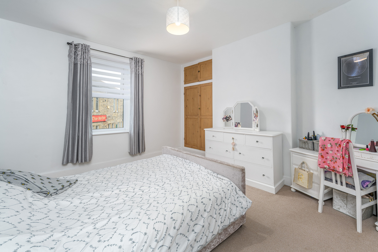 The master bedroom is a good size double incorporating an original built in cupboard with stripped wood doors. A window overlooks the front allowing plenty of natural light to enter. The good height of ceiling adds to the space of this beautifully light and bright room.