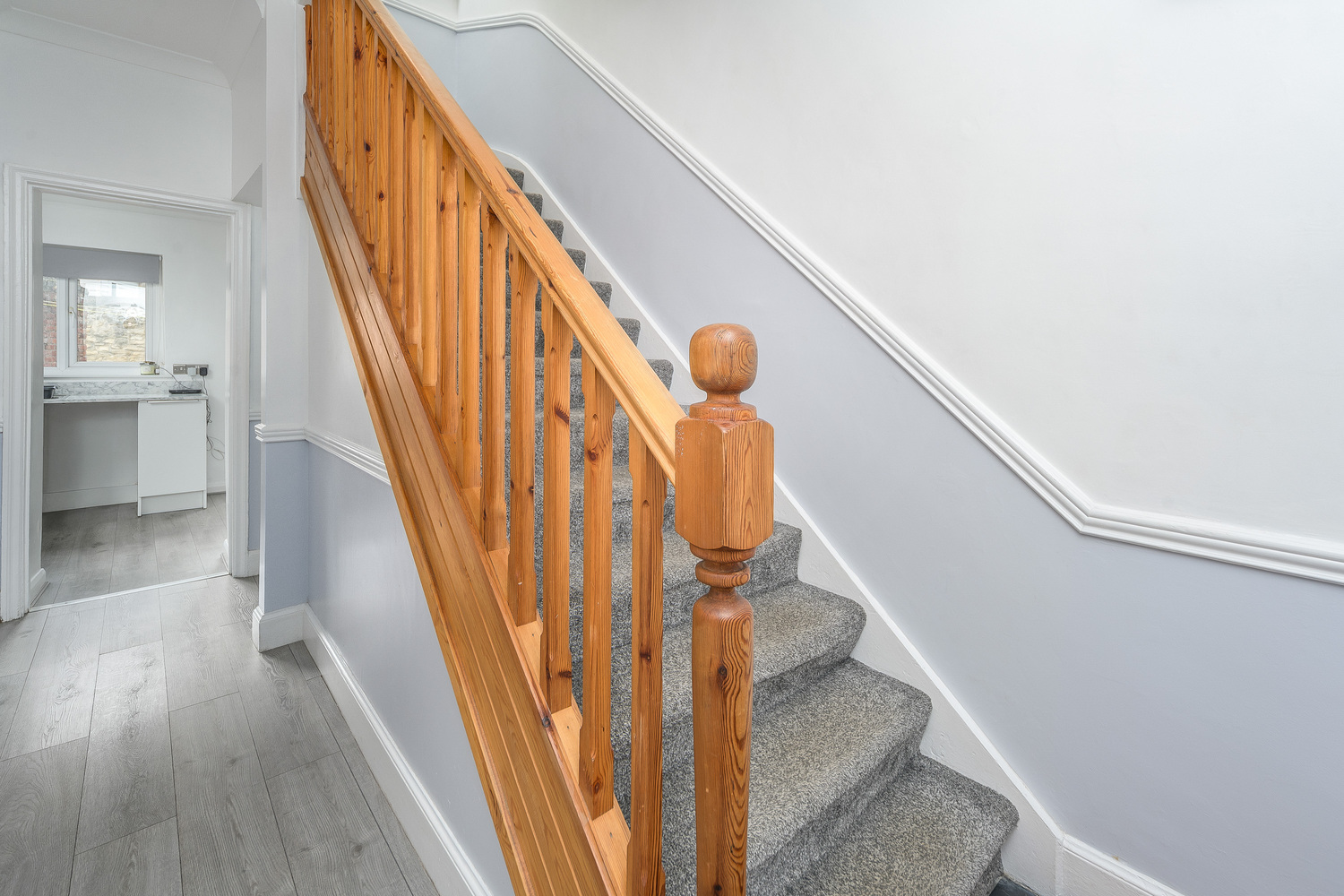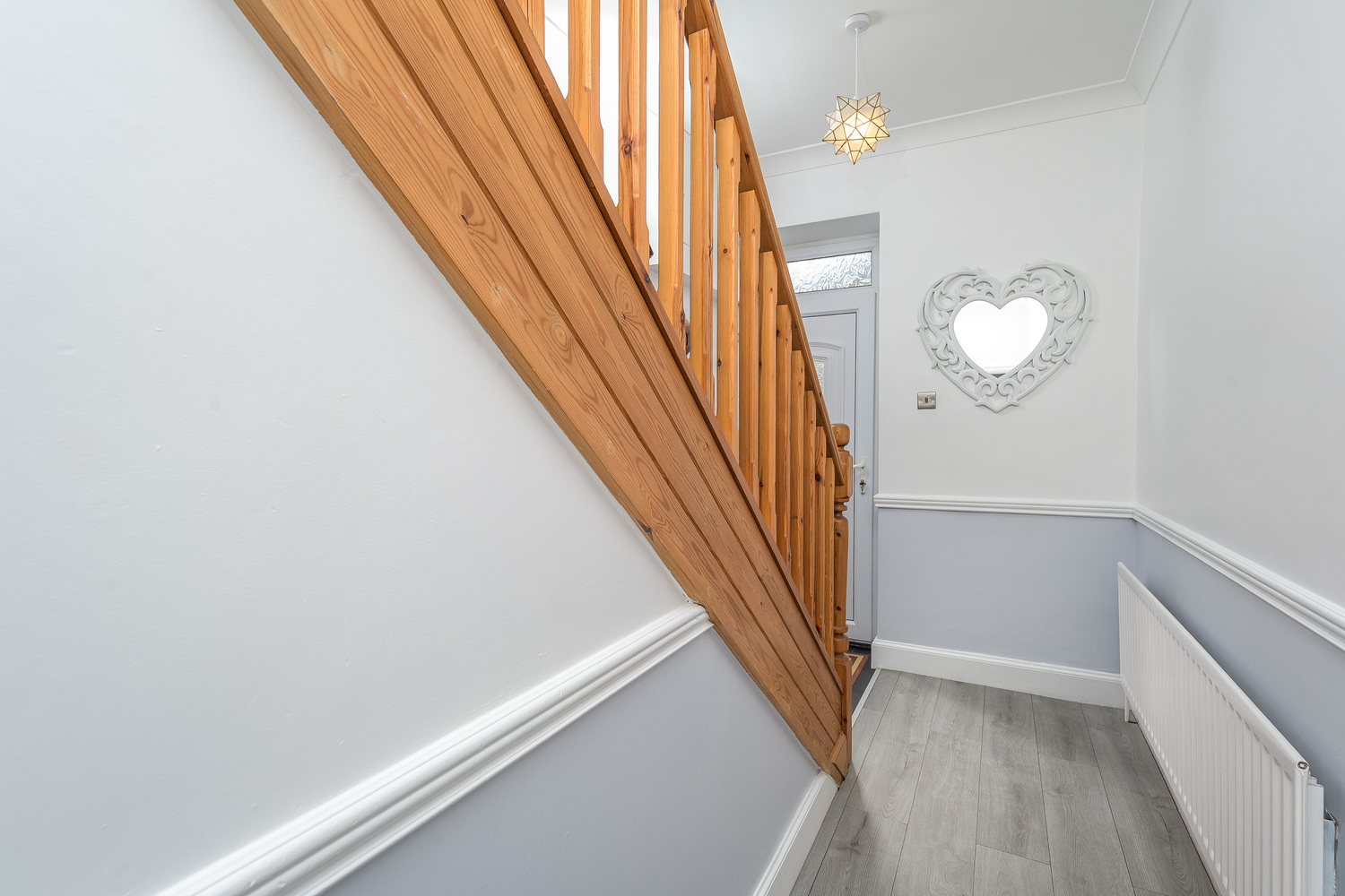 Entry is via the front door into an internal hallway with a lovely wide staircase leading to the first floor. The space beneath the stairs offers excellent storage potential. The LVT flooring creates a sleek look and is complemented by the dado rail and good height of ceiling, creating an impressive entrance.