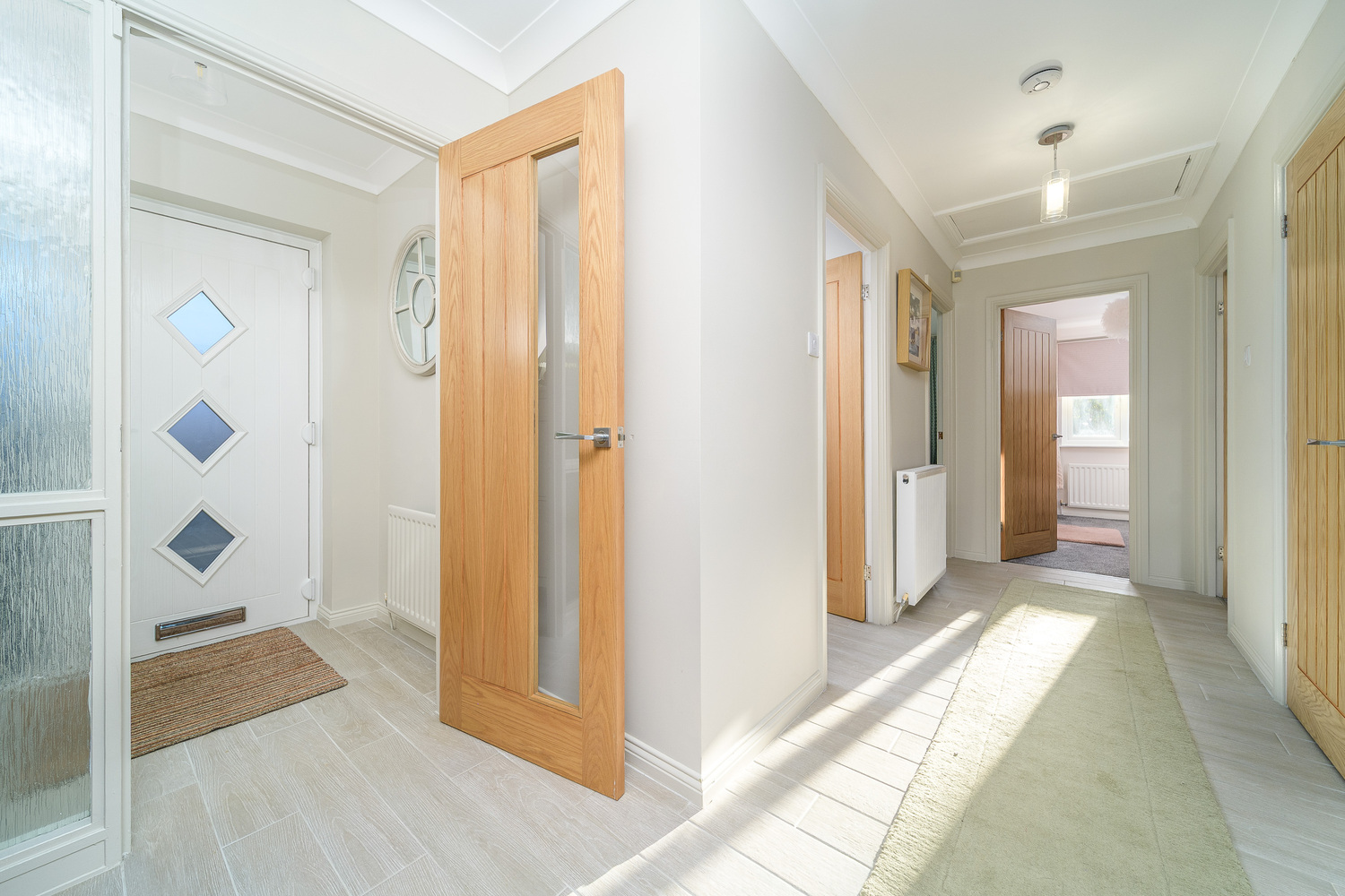 The front door opens into a light and airy entrance hallway which provides convenient access to the main living areas to one side and the bedroom accommodation to the other. You are left in no doubt of the quality of finish offered from this point of entry onwards and the light wood effect flooring is stylish and attractive extending into the kitchen-diner and utility creating a seamless transition between the different spaces.