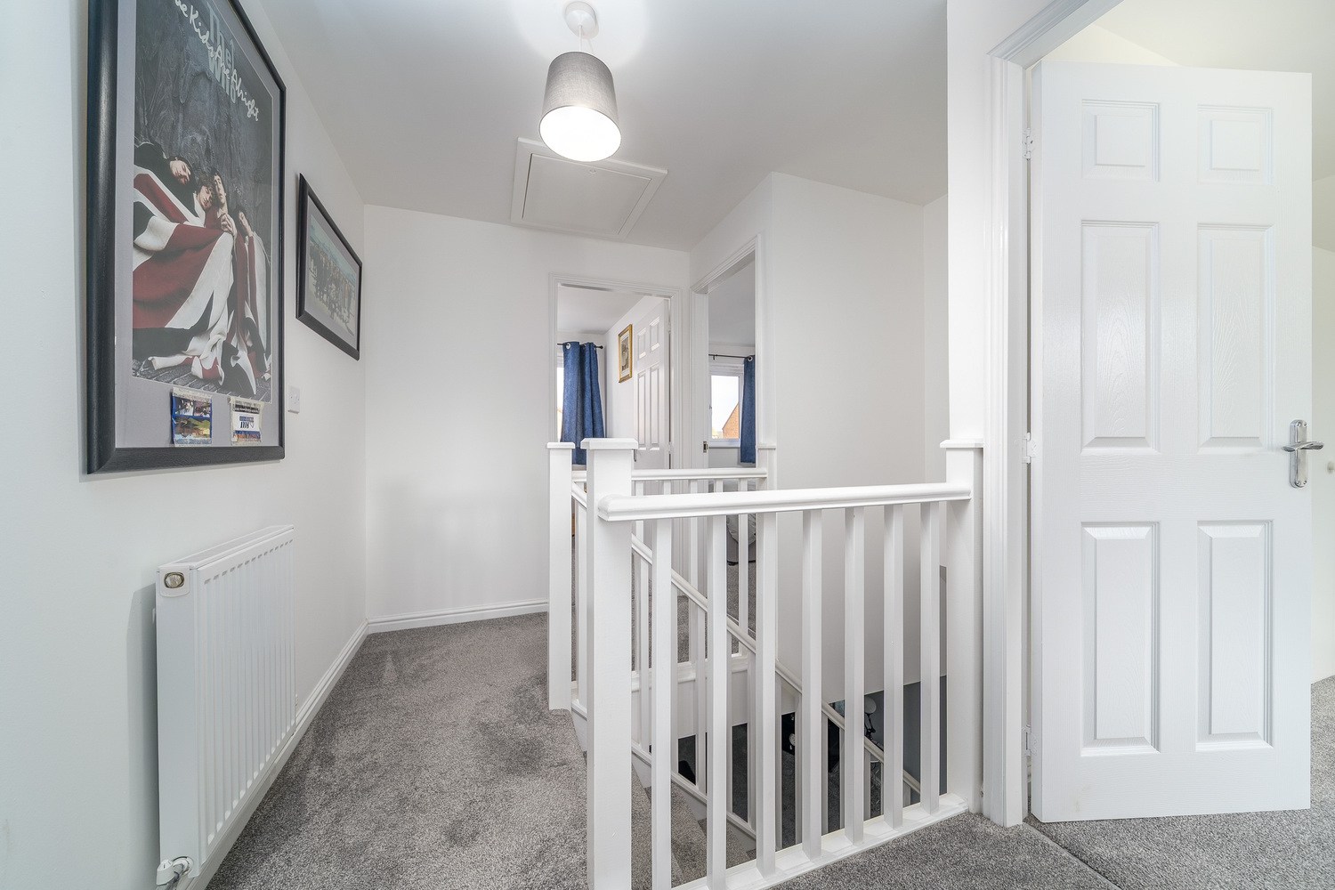 Taking the stairs to the first floor, the horseshoe shaped landing opens out to three bedrooms and the family bathroom. Loft access is available. All the bedrooms are neutrally decorated allowing the easy addition of accent colour should you so wish and benefit from a lovely silver-grey carpet which creates a seamless transition between the different rooms.