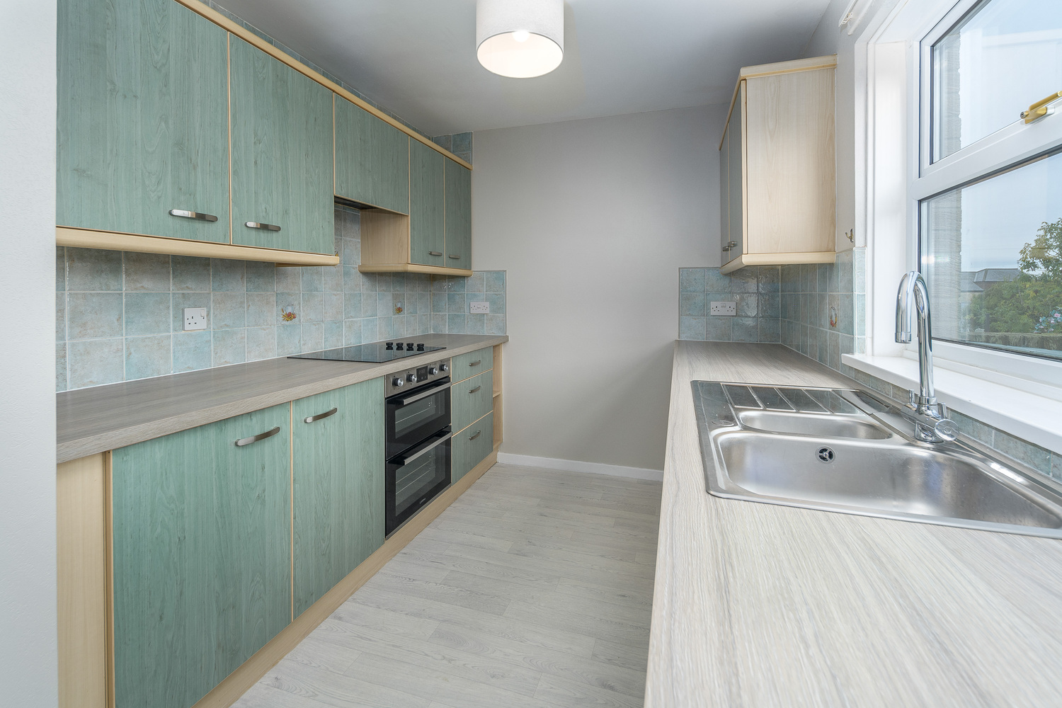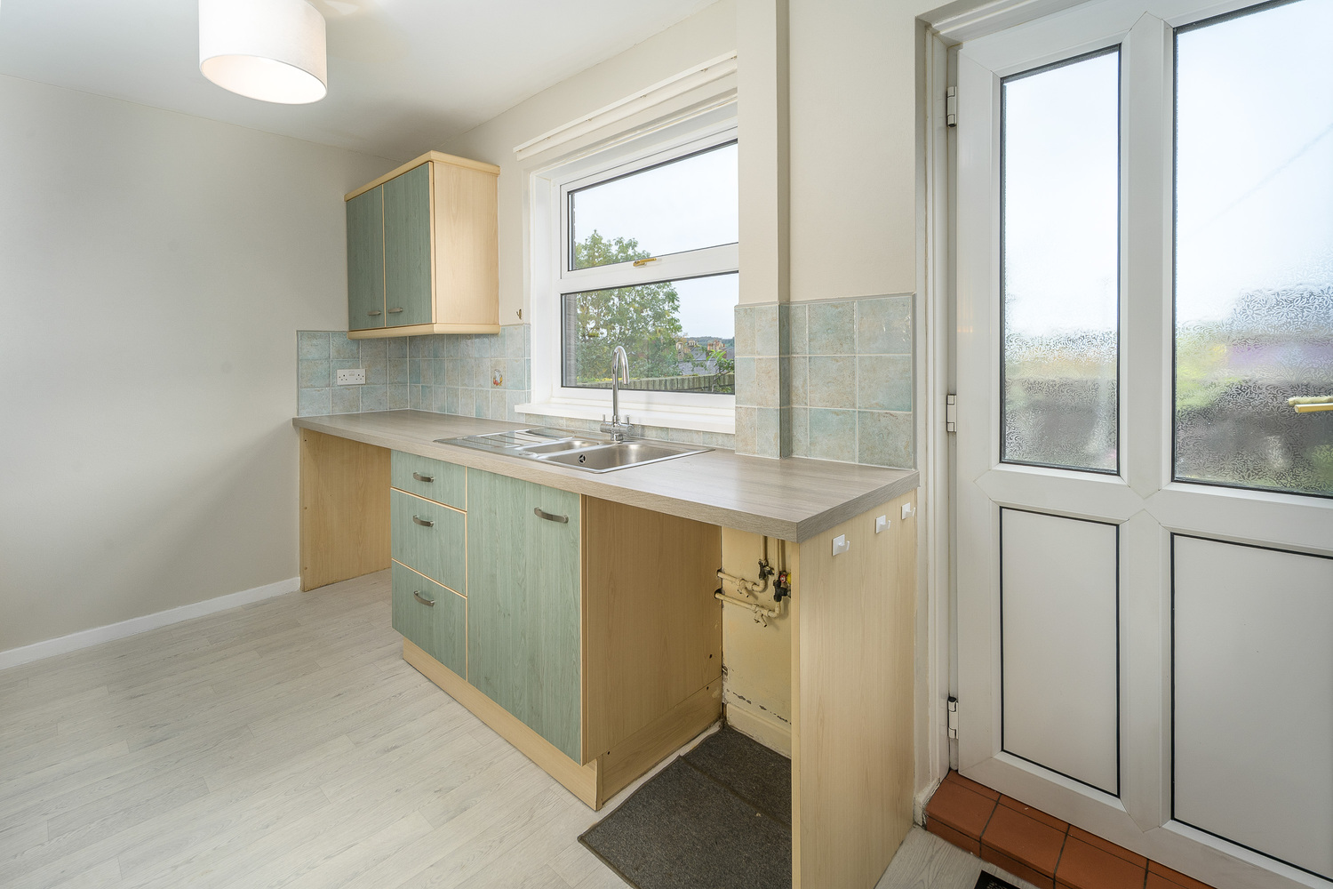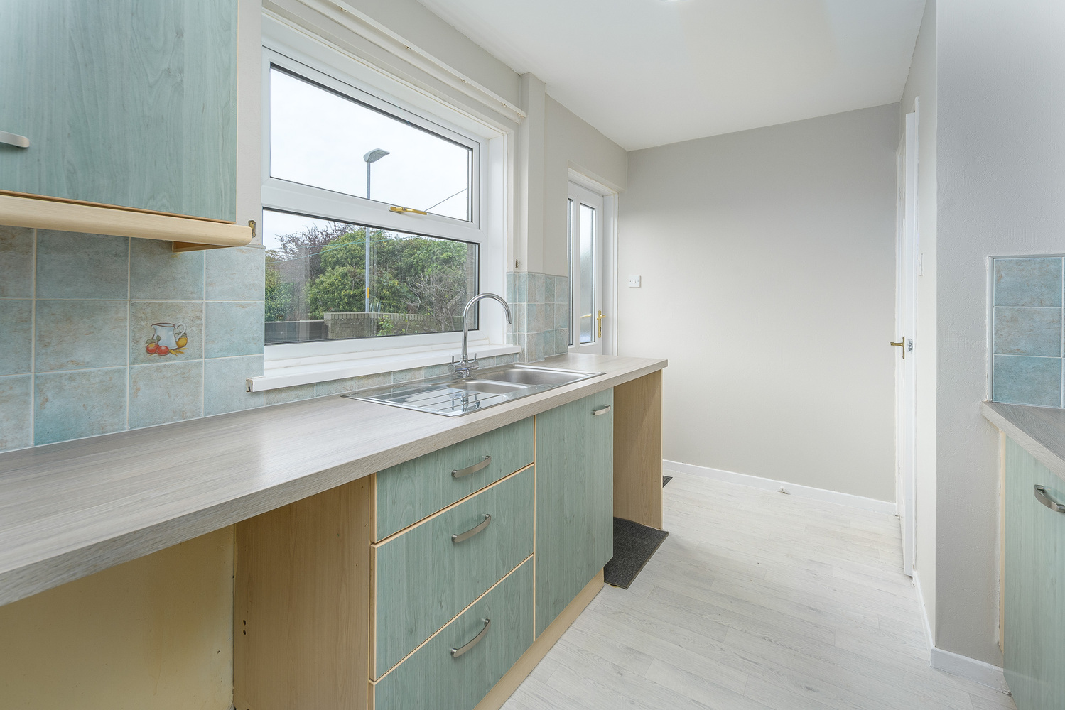 The kitchen is a bright and airy space offering a good number of wall and base units with a light green door complemented by a contrasting pearlescent splash back tile and an attractive wood look work surface. There is an under bench double oven, a four-burner ceramic hob beneath a built-in extractor fan, a bowl and a half stainless steel sink with a drainer to the side and plumbing and space for a washing machine. Under bench spaces are also available for a fridge and freezer. A window captures lovely views over the rear garden and a uPVC door provides external access to the garden.