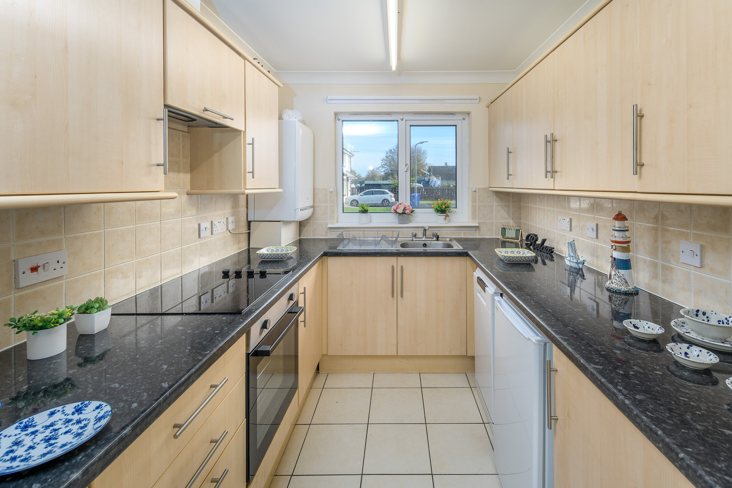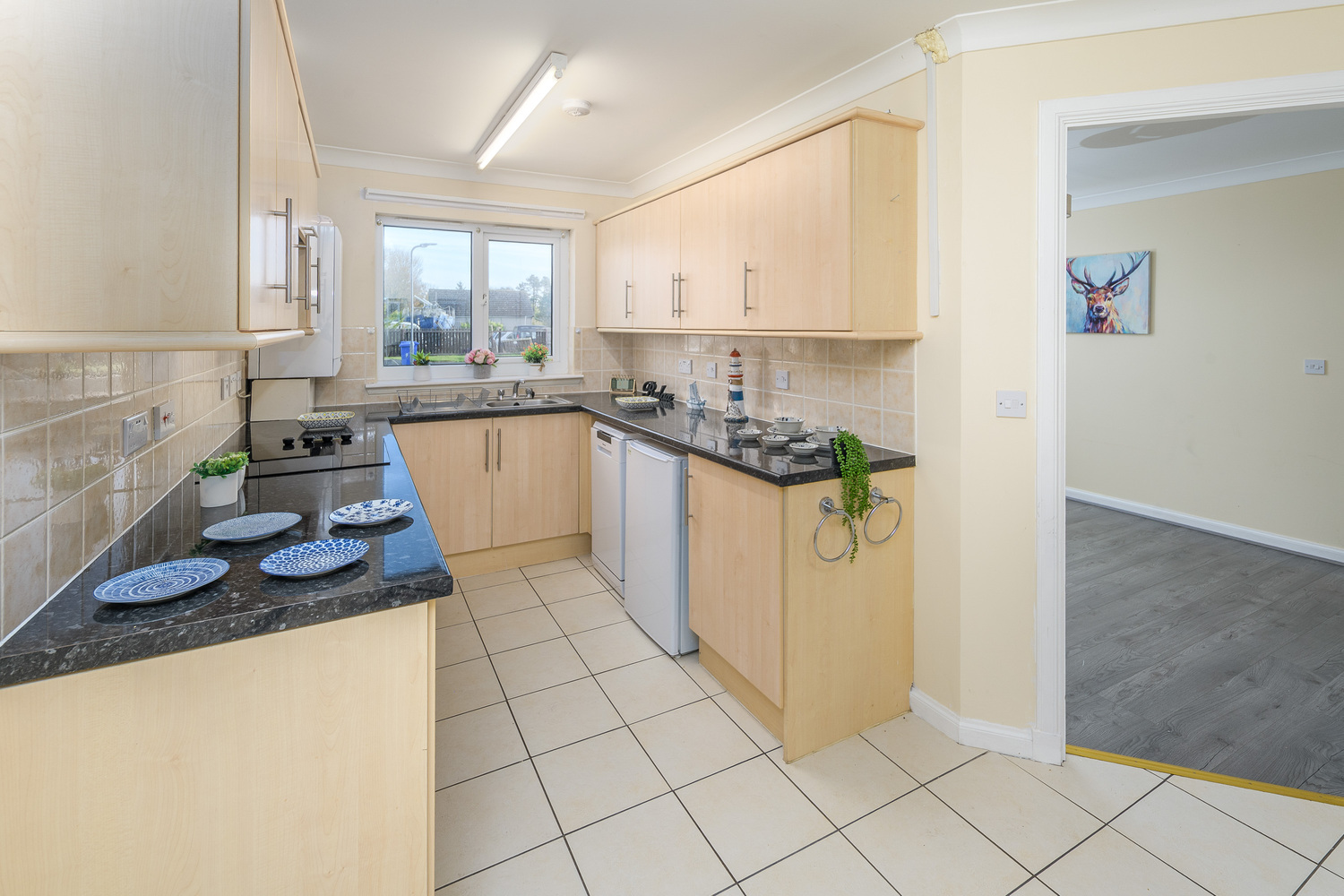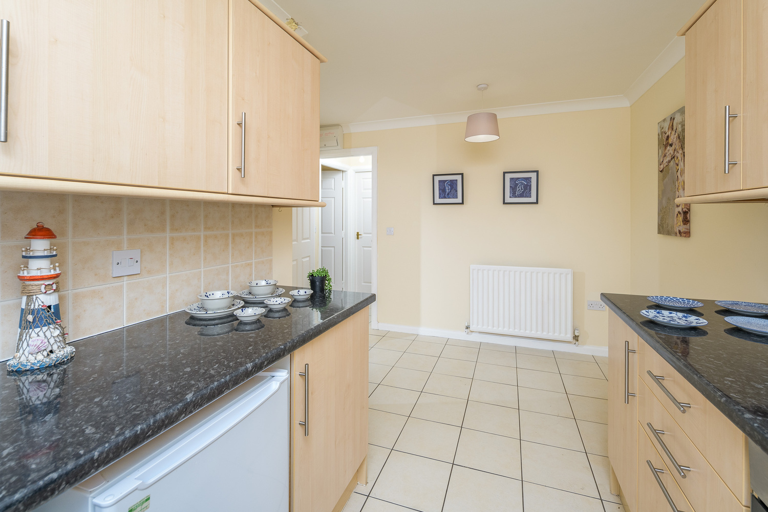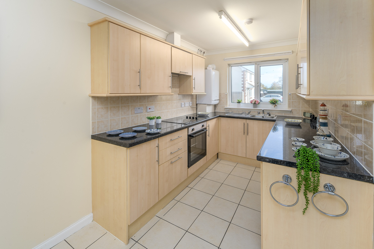 With a fully tiled floor and neutral decoration, the kitchen-diner is an inviting space which takes advantage of views to the front of the property. The kitchen offers a good number of wall and base units with a light-coloured wood effect door complemented by a contrasting black granite effect work surface and splash back tiling. There is space for an under-bench fridge and slimline dishwasher and in terms of fitted equipment, there is a single bowl stainless steel sink, an electric under bench oven and a four-burner ceramic hob beneath a chimney style extractor fan. The Baxi gas boiler is housed in a wall unit for ease of access, and many of the sockets have been upgraded to include USB ports. There is plenty of space to sit and dine making this a wonderfully sociable and comfortable room appealing to modern living.