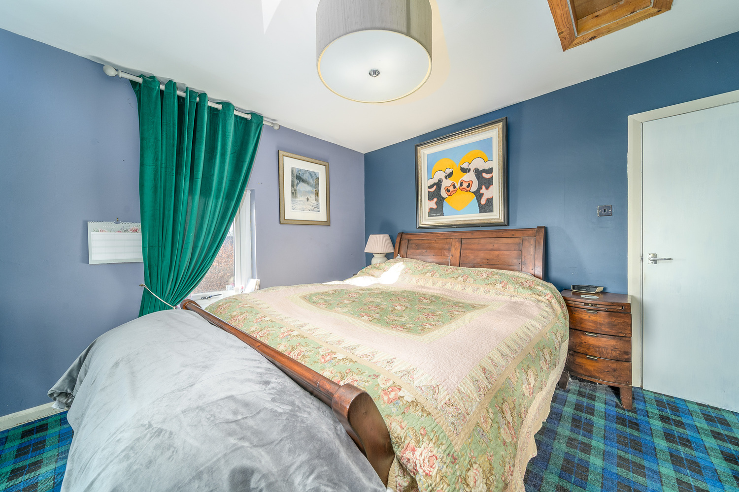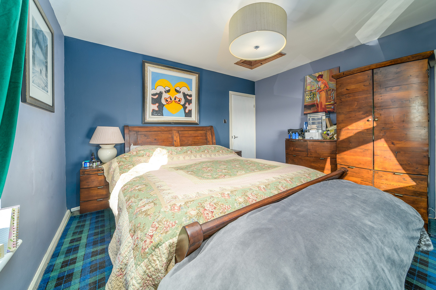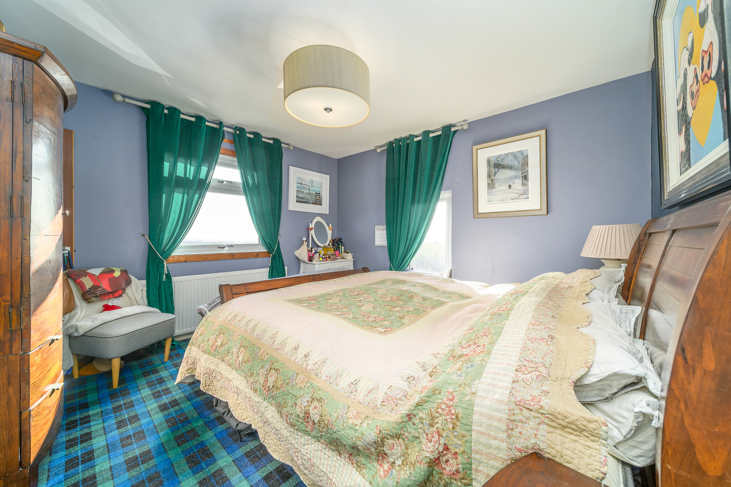 The principal bedroom is a spacious double room with a window overlooking the front of the property with views to the coast. The tartan carpet works in harmony with the rest of the décor creating a stunning look within this calm and restful room.