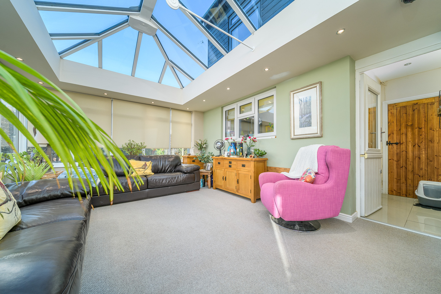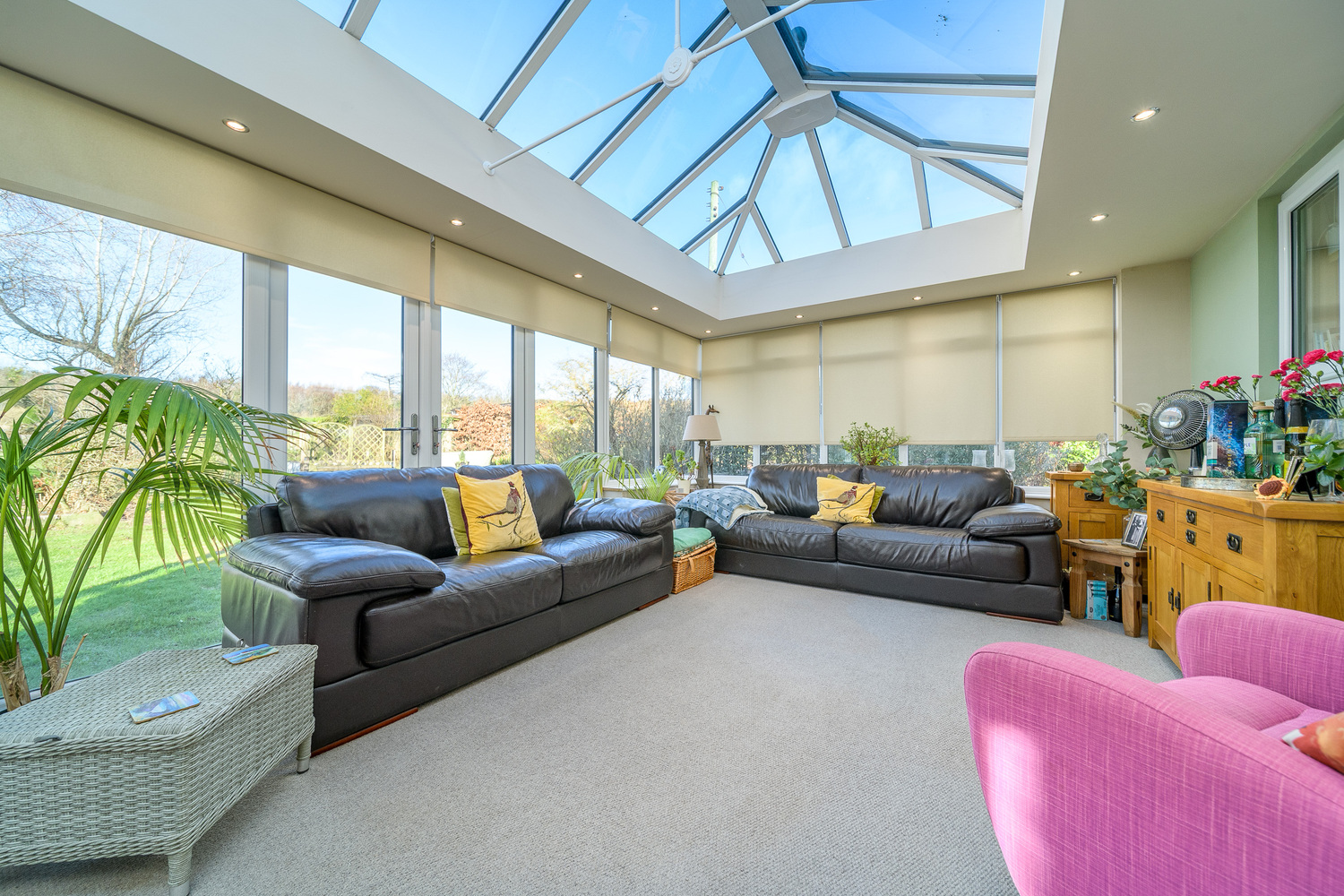 A partially glazed uPVC door opens into the recently constructed orangery which offers a fantastic additional living space. This extensive room boasting many windows and French doors, and a further door, opening out to the rear garden can be enjoyed throughout every season. The solid roof with lantern allows further natural light with additional lighting by way of recessed spotlights. The space is finished with a sumptuous carpet adding comfort as you move throughout.