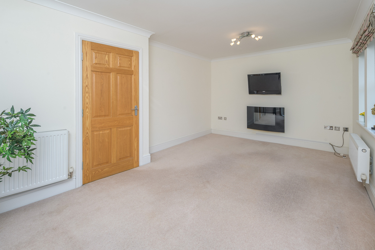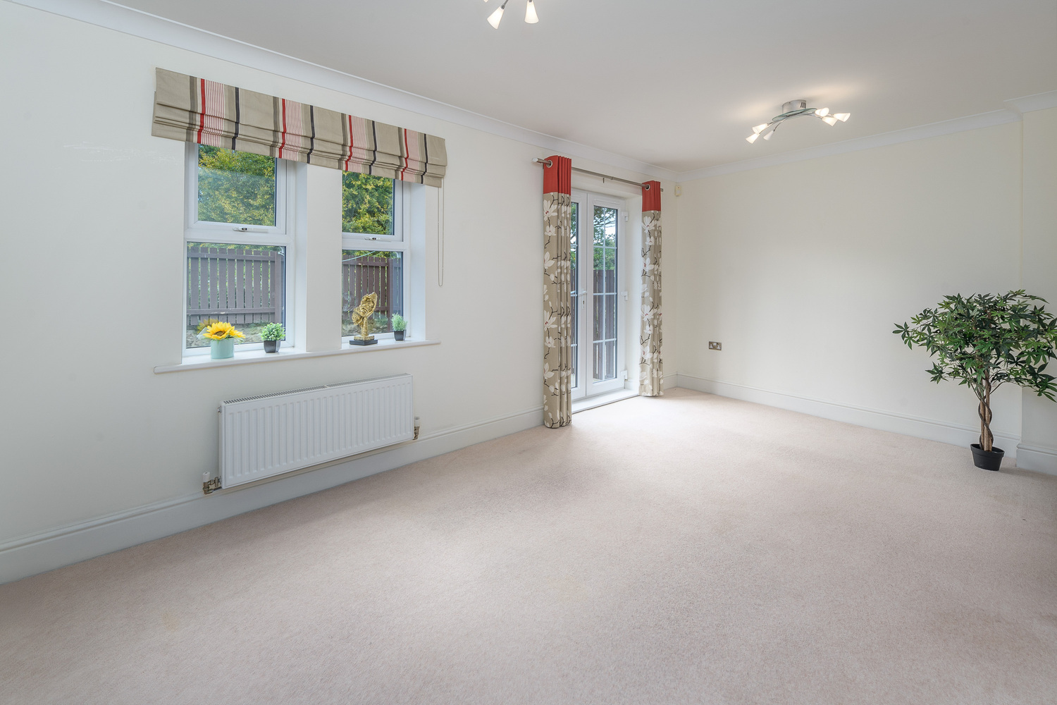 Bathed in natural light, the ground floor lounge, finished with chrome switches and sockets, is an inviting space in which to spend time with family and friends. Two windows take advantage of the rear garden views, with mature trees forming a pleasant backdrop, and a pair of French doors open out onto a paved rear garden which is ideal for al fresco dining.