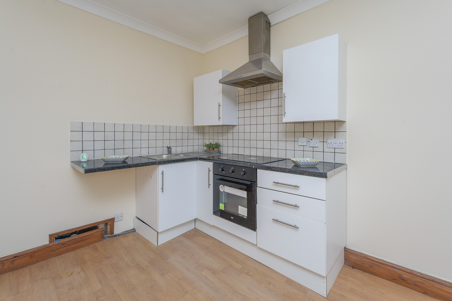 Leading from the main living space is the bedroom which is a spacious double room with an alcove adding character. There are plenty of storage options in addition to the boiler and gas metre which are housed here for ease of access. A large window overlooks the rear of the property and allows plenty of natural light: a lovely airy and restful room.