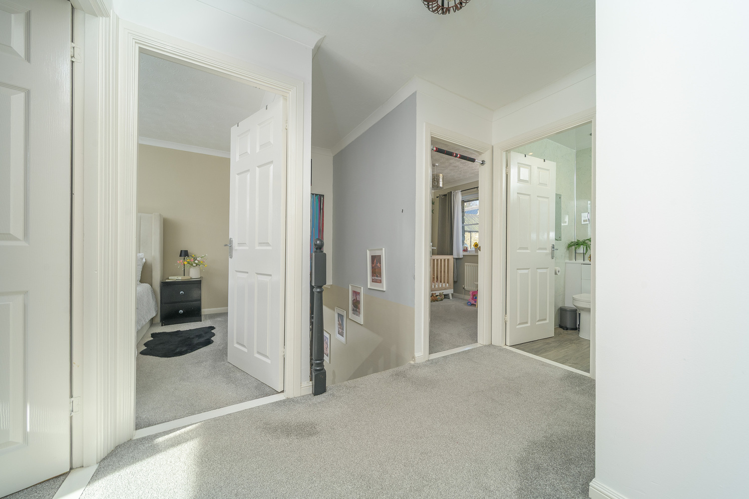 Taking the stairs to the first floor the large landing opens out to four bedrooms and the family bathroom. Loft storage is available via a drop-down ladder. The bedrooms benefit from a sumptuous carpet adding comfort as you move throughout and the bathroom is finished with LVT flooring.