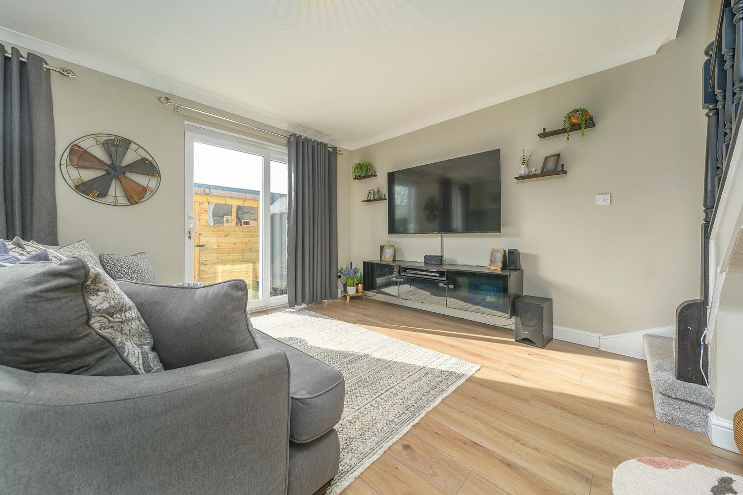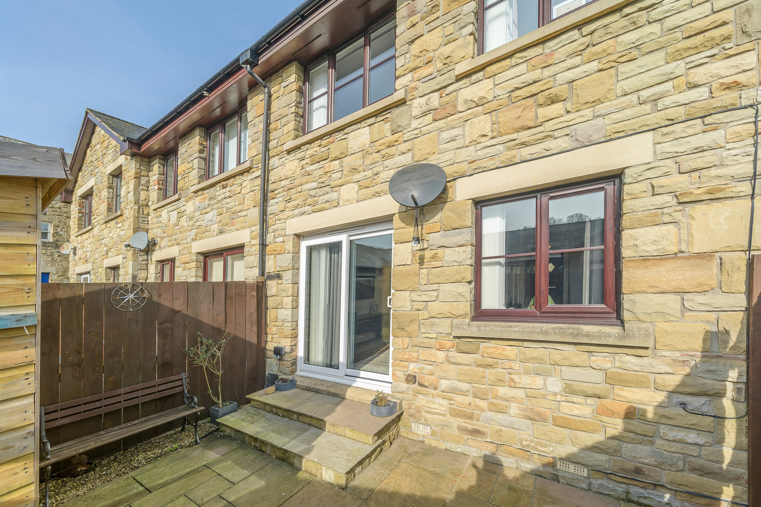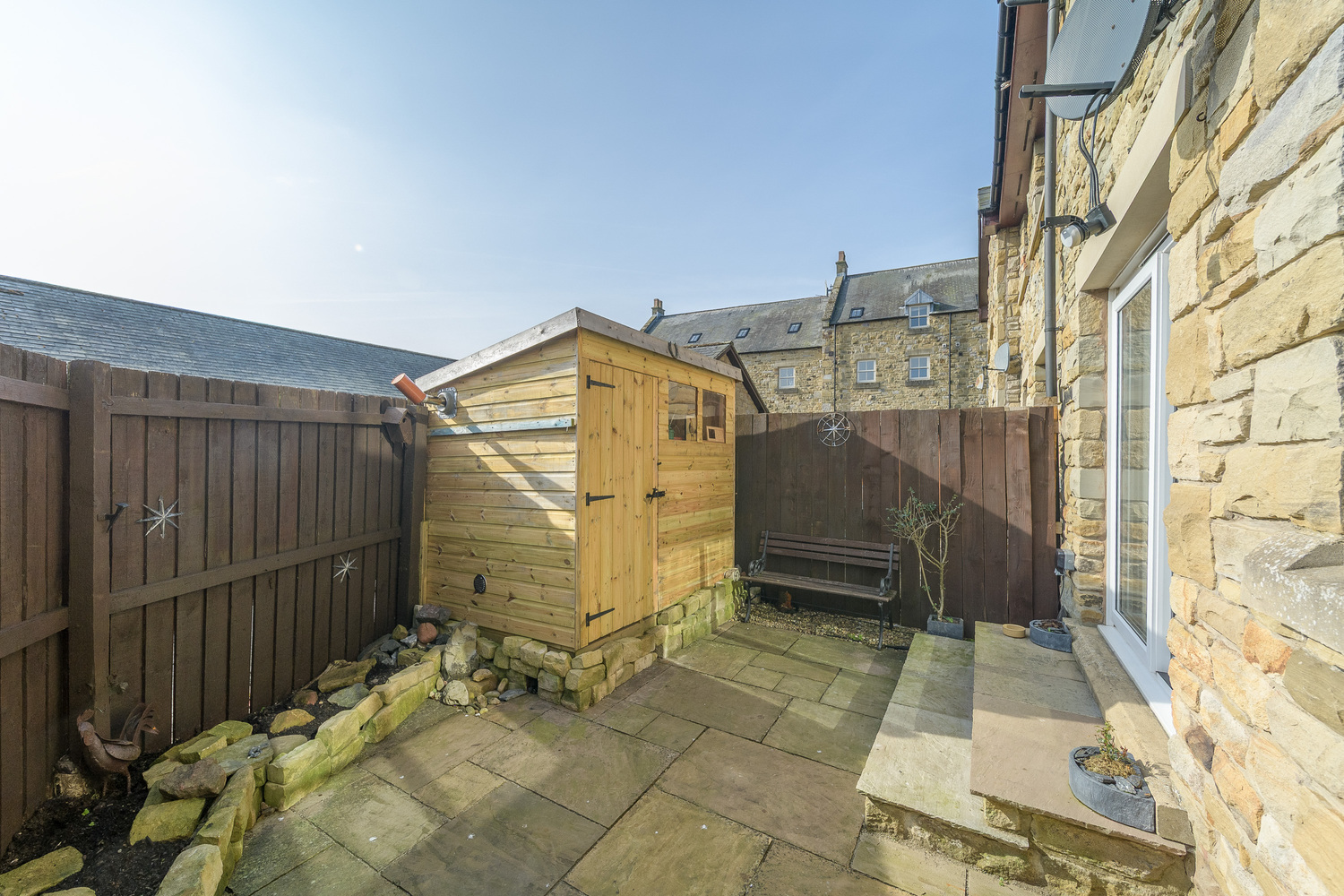 The rear courtyard is low maintenance and framed by a border and offers the perfect play in which to relax in the sunshine with a cup of coffee or glass of wine at the end of the day. The space is securely fenced to allow children and family pets to play safely, and a gate provides external access. There is a shed which is ideal for the tidy storage of garden accessories.