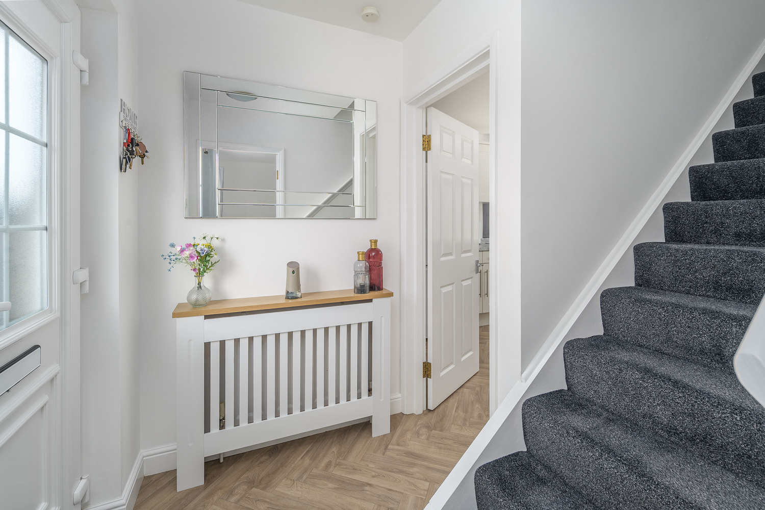 Taking the stairs to the first floor, the landing, illuminated by natural light entering via a window to the rear, opens out to three bedrooms, the family bathroom and a large storage cupboard. Loft access is available. The bedrooms upstairs are all carpeted with sumptuous carpet.