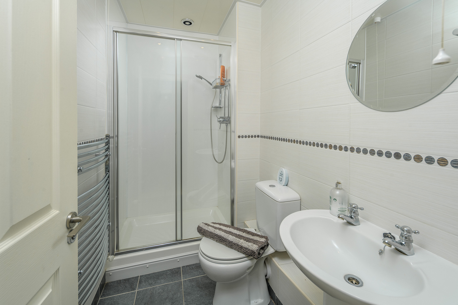 The primary bedroom is a light and bright double room overlooking the rear of the property and benefits from being next to the bathroom, the fireplace with cast iron insert is appealing as is the woodwork surrounding the window. The bathroom comprises a pedestal wash hand basin, a close coupled toilet with a push button, a sliding door shower cubicle with shower within, an electric shaver point and a wall mounted mirror. The space has been finished with neutral tiling incorporating a delicate mosaic.